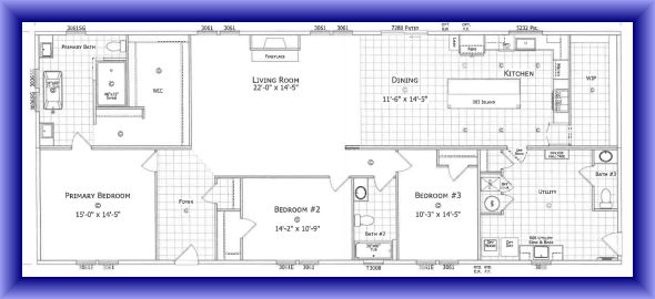 This floor plan is a 3 bedroom. Unusual for a 32 x 76. It has a large foyer, a very large utility room, a large master bedroom wlk in closet. The bedrooms are not super large but adequate.